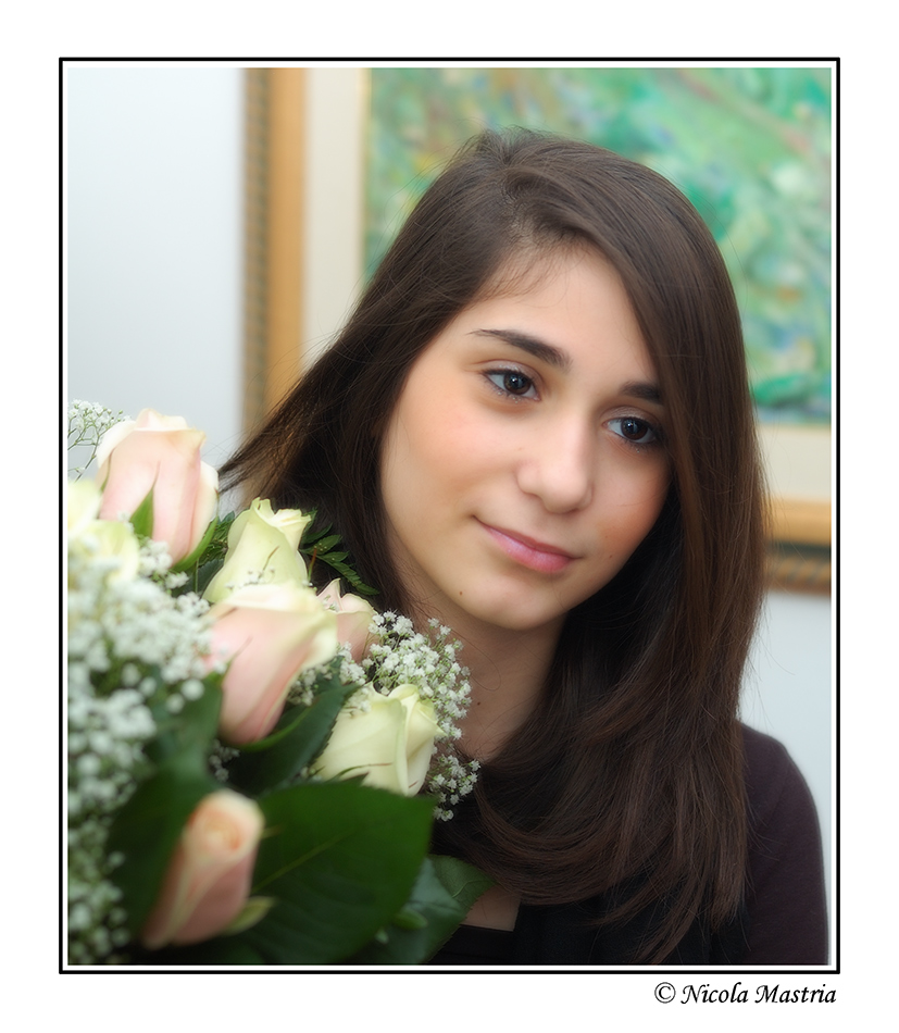 Delicato l'accostamento fra il bel primo piano e la dolcezza dell'espressione.