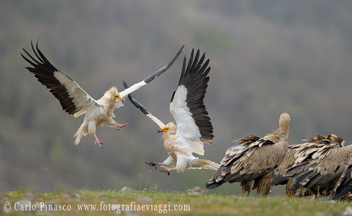 Bella la scena, con i grifoni che sembrano indifferenti alla lite.