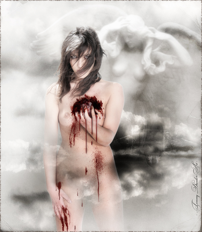 solo una cosa stona...i rigoli di sangue che colano dalle mani all'addome non dovrebbero essere così lineari ma seguire l'andamento delle linee delpalmo e eventualmente dell'addome...spero di essermi spiegato