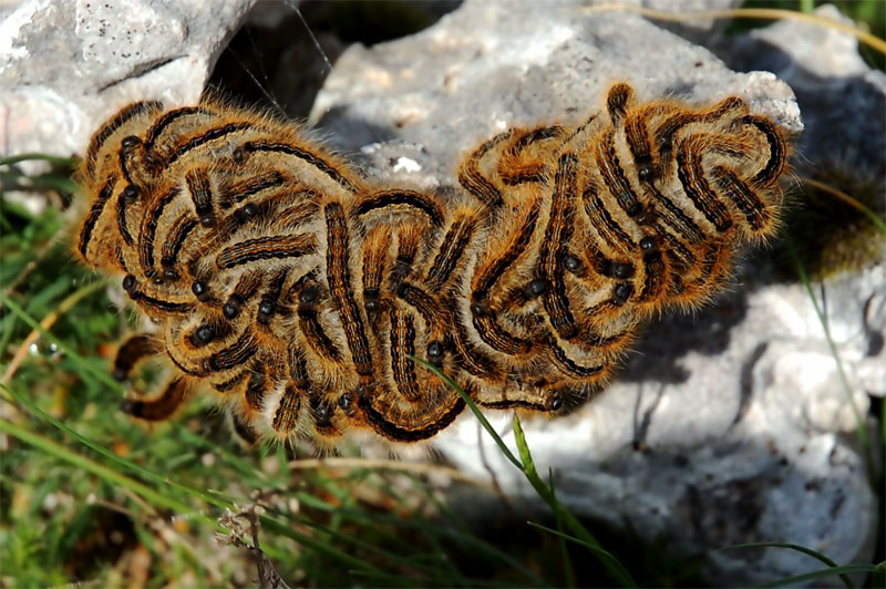 Sono larve di Processonaria del pino (Thaumatopoea pityocampa), tra l'altro i peli di cui sono ricoperte sono estremamente urticanti ed danno un effetto simile a quello delle foglie di ortica.