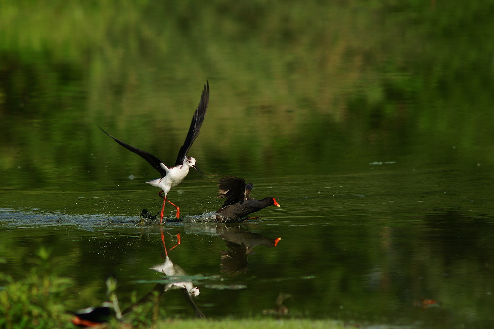 Cavaliere d'Italia che attacca una gallinella d'acqua, per difendere il nido _________________ Sonya7 iv - Sony Alpha 850-Sony rx100 mk III