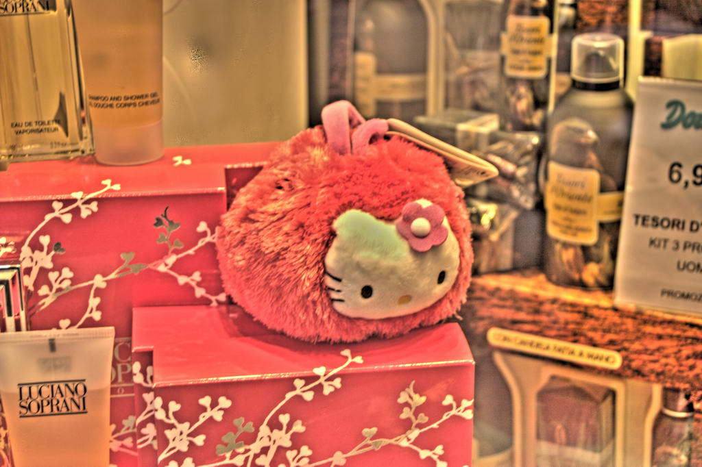 Hello Kitty, la mutaforme! Una delle tante manifestazioni della gattina (malefica), che infesta le vetrine di Milano!