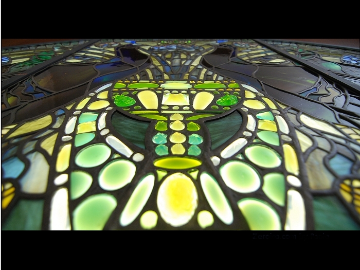 particolare dei "pavoni" vetrata d'arte . Casina delle Civette. Roma