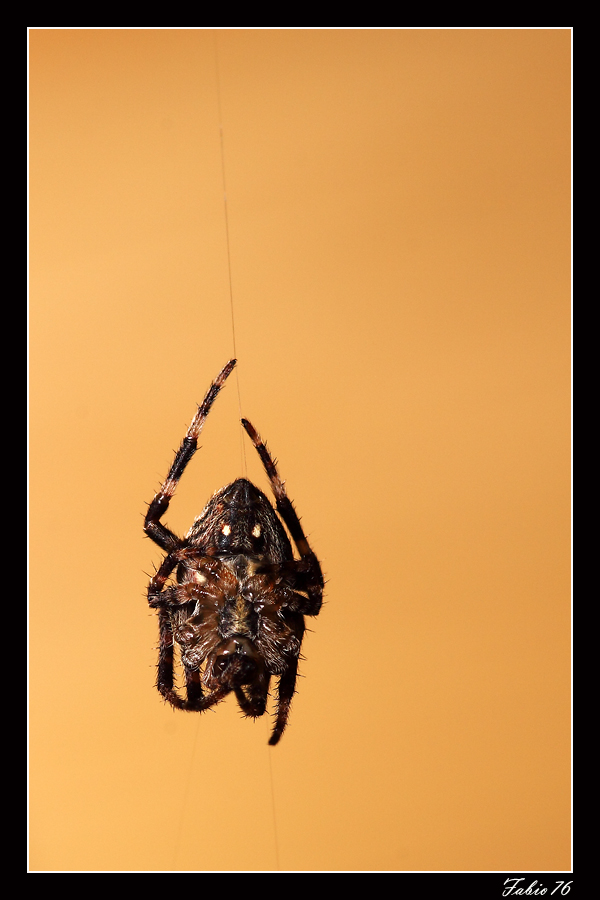 Molto singolare la foto per quel filo che sorregge il ragno e quello sfondo dorato che lo impreziosisce.