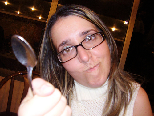 Se non erro ti sta minacciando, molto buffa come espressione, inoltre la luce del flash e gestita male, si nota molto sulla mano in pp.