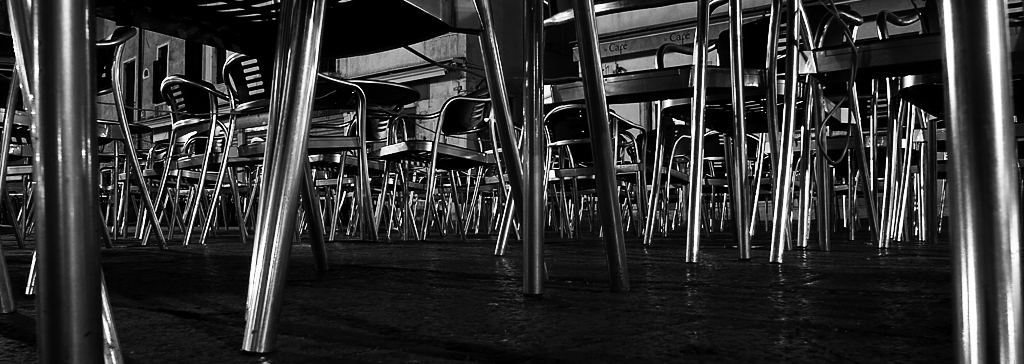 In un sabato sera di primavera, dopo aver sorretto chissà quanti turisti anche queste semplici sedie si rilassano sotto una luna piena leggermente velata, aspettando l’alba di un nuovo giorno.