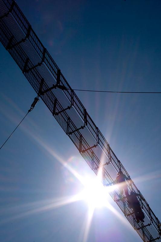 La foto ci proietta in una dimensione davvero fobica, mette una certa paura. Nonostante le pareti siano alte credo che attraversare quel ponte sospeso dia i brividi.