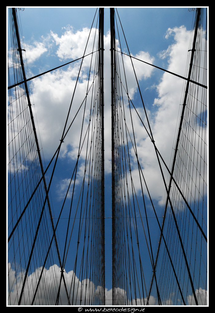 no, niente photoshop (se fai caso alcuni tiranti non sono perfettamente simmetrici) si tratta del sentiero pedonale sul ponte di Brooklyn che passa nella parte superiore e centrale del ponte