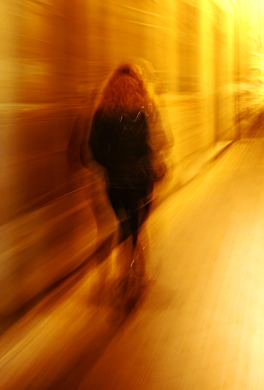 Tralasciando l'aspetto fotografico di valenza estetica fondato su di un esperimento di colore, che allontana dalla veridicità di una scena street o life che sia, il contenuto dello scatto è debole: riprendi un soggetto femminile di spalle che non compie nessun gesto particolare ed è decisamente fuori contesto. L'effetto mosso non contribuisce a rendere significativo lo scatto. Se hai voglia e tempo di guardare qualche scatto del genere street puoi trovarne di utili nei tutorial di sezione.