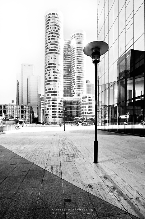 Ha tutto quello che serve: elementi in primo piano, quelli sullo sfondo che ne richiamano lo sviluppo in verticale, le strutture metalliche, le architetture, e le presenze umane, discrete, ma presenti, in tutto ciò..