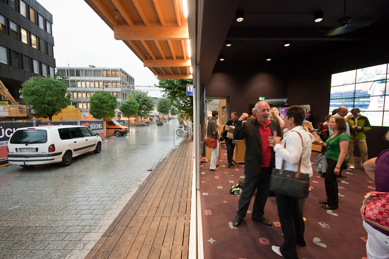 Presenti con grande efficacia una dicotomia funzionale e ben fatta di un fotogramma orizzontale, che porta a riflettere su diversi contrasti compositivi: un luogo chiuso, protetto, con luce artificiale, che accoglie un clima umano di allegria, di dialogo, ricco di gesti e posture significative, che si contrappone ad uno spazio aperto, con luce naturale, ma freddo, asettico, senza vita, senza suoni familiari, di solitudine profonda. Due realtà profondamente diverse che esistono allo stesso tempo grazie alla tua felice interpretazione. Valida anche la scelta di lasciarla a colori.