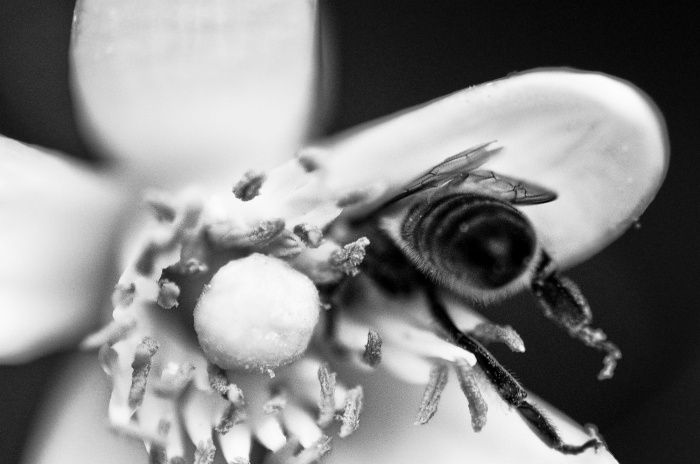 Non credo che ogni immagine che ritragga un fiore od un insetto debba necessariamente essere una " macro", e quindi con dei definiti e certi (ma forse ormai inflazionati e stravisti) canoni di ripresa. Qui a mio avviso non ci troviamo di fronte ad una fotografia di carattere "didascalico" o "bibliografico" che ben poco lascia all'interpretazione dello spettatore,se non appunto la magnifica messa a fuoco o la stupefacente nitidezza, ma piuttosto al narrare di una storia, o forse addirittura nel caso specifico dell'ape alla narrazione della sua intera vita, dipendente infatti dell'atto sopra ripreso.