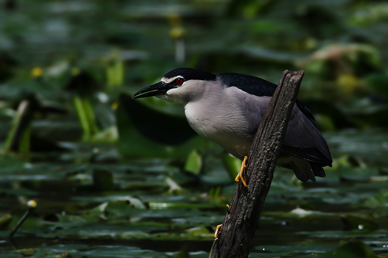 Nitticora fra le ninfee: