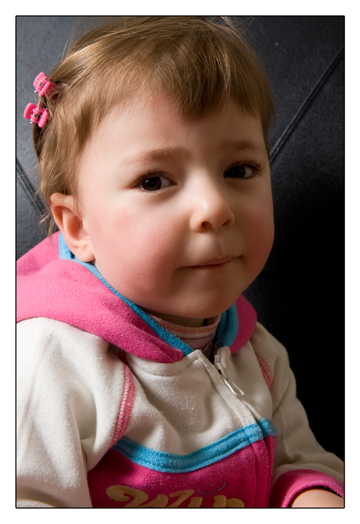 .....Ciao Vito, suppongo queste siano le tue prime prove......non penso sia riuscitissimo come scatto, trovo la luce troppo laterale lasciando metà volto della piccola Sara completamente in ombra.....io avrei cercato una posizione della luce più frontale!  _________________