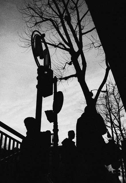costringi l'osservatore a focalizzare l'attenzione sulle forme di questo fotogramma verticale dove il bianco e nero esasperato fonde l'uomo con il contesto urbano: tutto si fa unità e perdiamo le coordinate percettive fra animato e inanimato, consapevole e inconsapevole, convessità e concavità, senso e non senso. Una ottima intuizione che disegna, da un punto di vista originale, una fotografia opaca, autoriflessiva, ricca di richiami visivi, di geometrie. Quello su cui l'immagine richiama l'attenzione dello spectator è questo quadro complesso, senza profondità viva: non una finestra trasparente sul mondo reale ma una superficie opaca che la mima e la trasfigura. La sua autoriflessività produce un effetto soggettivo attribuendo alla fotografia la legittimità ed il ruolo dell'autore, il suo linguaggio intimo.