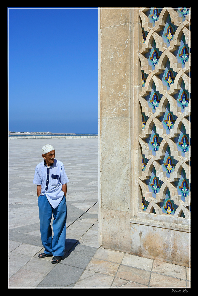 La foto e' sicuramente più life. Il soggetto non sta compiendo niente, è life per il suo modo di essere, statico, in attesa di qualcosa che catturi la sua attenzione. Passami l'espressione "un life in potenza". Ha vissuto quel tanto che basta ad avere il giusto numero di rughe per permettersi di andare ad aspettare l'ora della preghiera nel piazzale della moschea così spavaldo con le sue mani in tasca.
