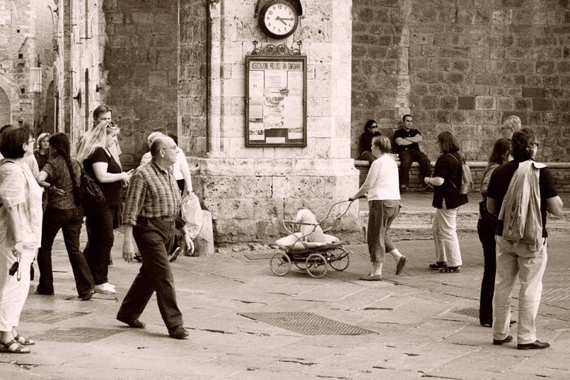 Nel quadro che riprendi, la particolarità è che nessuno delle comparse presenti sulla scena degni di uno sguardo la signora con il suo particolare passeggino...