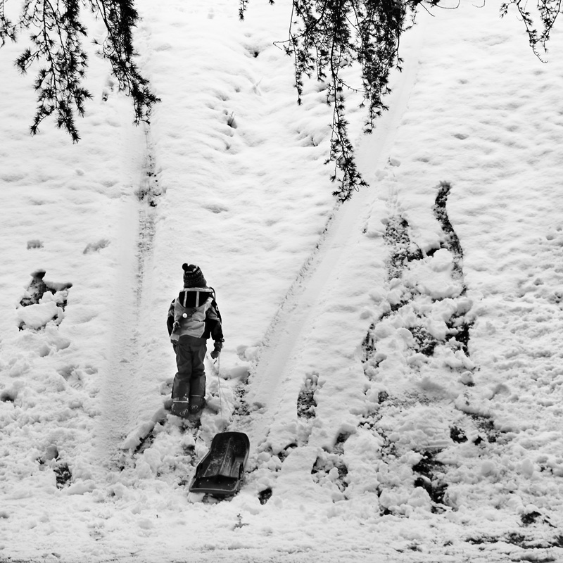 Chi non è stato ragazzetto e non ha sperimentato il gusto di una scivolata con lo slittino sulla neve? La foto ci proietta che in momenti di ricordi passati.