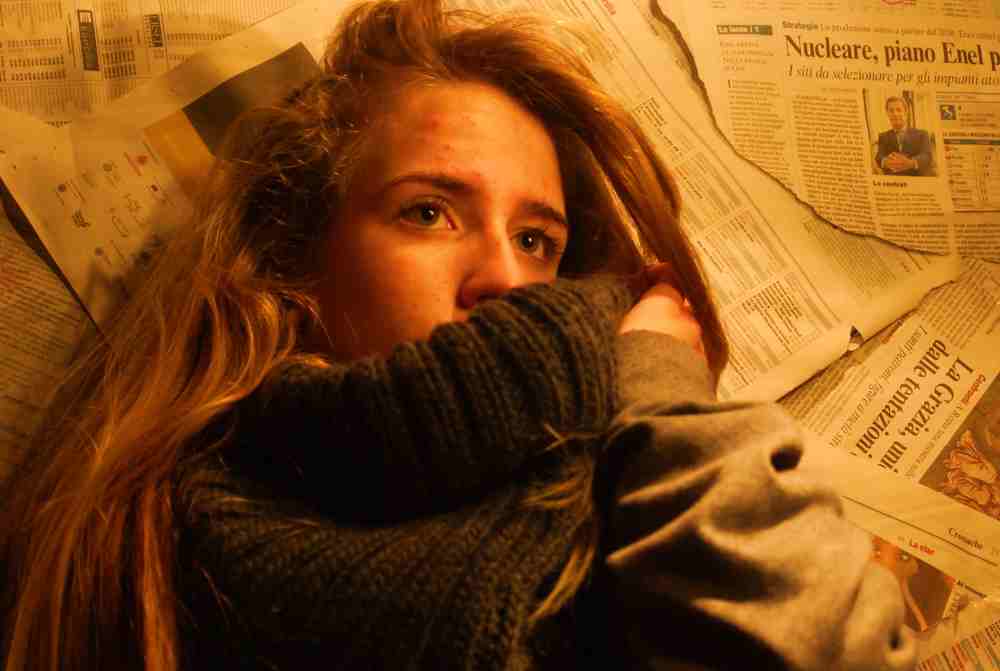innanzitutto benvenuto . a occhio e croce direi che è stata scattata con un telefono, forse è per quello che la qualità dell'immagine è quel che è. lo sguardo della ragazza è interessante, e forse una scelta più accurata dei titoli sugli stralci di giornale avrebbe potuto dare quel tocco in più di cui ha bisogno lo scatto. le tonalità calde non mi dispiacciono, anche se forse sono eccessive. Riprovaci.