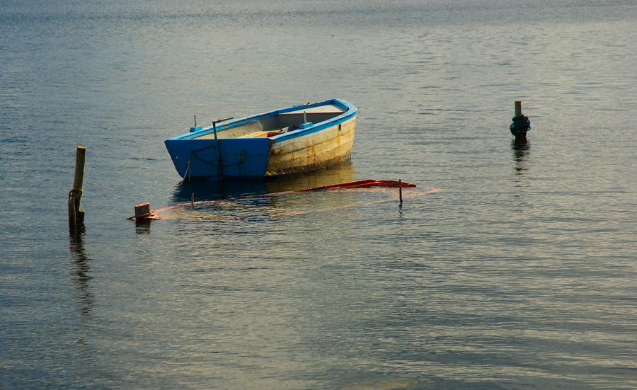 Con la composizione che ho illustrato sopra, io avrei avuto una sesazione di pace, invece vedendo la tua composizione ho più una sensazione di instabilità in quanto il mio sguardo si sposta dalla barca in primo piano verso il basso per notare quella sommersa e l' acqua, questo movimento verso il basso mi trasmette questa sensazione di affondamento come se si volesse dire alla barca in superficie "vedi... prima o poi quella sarà la tua fine"