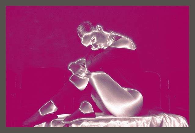 L'effetto grafico contrastato di questa immagine ha un forte impatto ma, sinceramente, non riesce a comunicarmi granchè. Dentro vi si sfuma l'espressione della modella (che potrebbe essere interessante) ed anche la sua postura è penalizzata (sembra spezzata) dall'effetto bicromatico. A mio parere il risultato della tua elaborazione è da ristudiare.