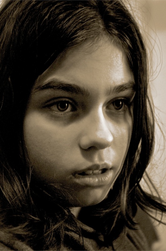 Sì forse stampata migliorerebbe, ci sono zone bruciate sul naso, occhiaie profonde dovute alla luce e per i miei gusti è un viraggio un pò cupo per una bambina che dovrebbe vivere nella spensieratezza. Comunque un bel ritratto.