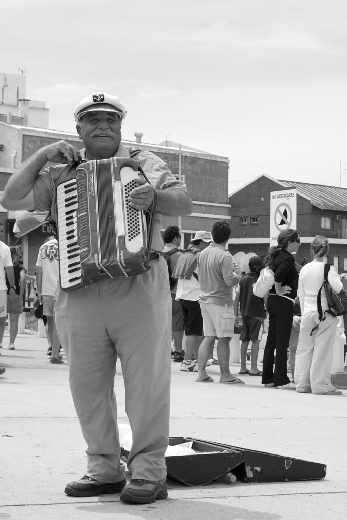 Provola questa foto è strana nel senso che l'azione è da un'altra parte, a destra dove tutti sono rivolti, e sembra che tu e il suonatore stiate come per conto vostro, separati; in questo modo direi la foto è più un ritratto di strada e infatti l'espressione del suonatore è simpatica; tecnicamente hai tenuto bene il controluce ma il bn mi pare poco contrastato.
