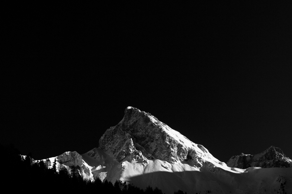 In effetti avevo pensato a un cielo un po' più chiaro, ma alla fine ho deciso di lasciarla così per il contrasto neve-cielo che mi ricorda un po' la notte. |