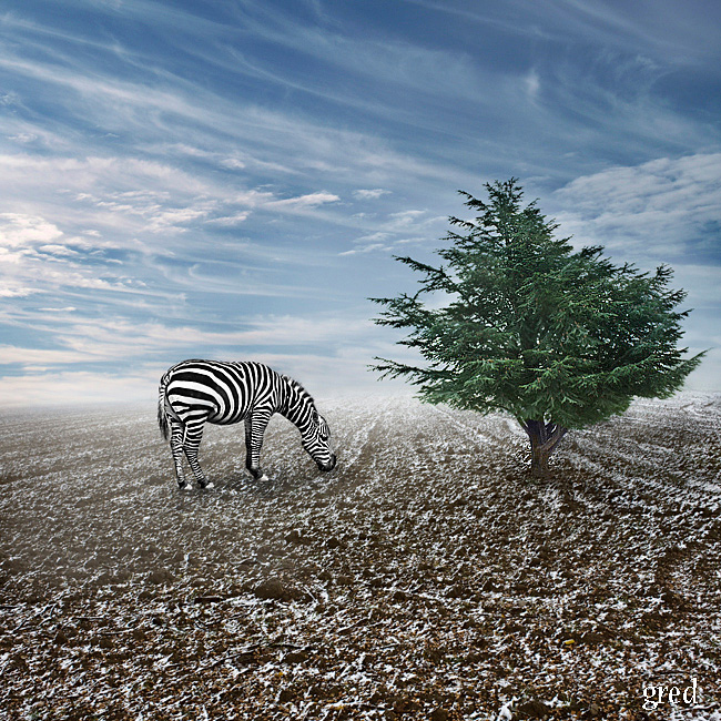cmq la zebra che bruca la neve mi fa morire , e alla fine la surrealta' dell' alberello non la trovo cosi' azzardata nell' economia della compo .