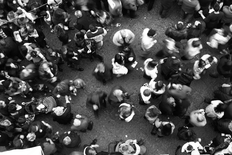 | Condivido le osservazioni sull'istantanea del bravo Ueda, soprattutto sull'inestetico e sovraesposto angolo inferiore sinistro. L'originale punto di ripresa dall'alto e la lunga focale, creano un motivo umano di tipo irregolare. Le singole figure ripetute sono caratterizzate da una piacevole entropia che si espande oltre i limiti visibili dell'inquadratura dando la piacevole sensazione che continui oltre i margini, senza soluzione di continuità. Lo sguardo dello spettatore, privo di limiti visibili è libero di vagare attraverso la dinamica scena lievemente enfatizzata da un effetto mosso. Interessante DGreportage..