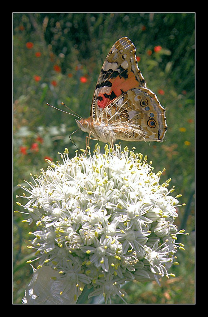 Per cercare i colori accesi della farfalla ho sparato il fiore ...credo:( |