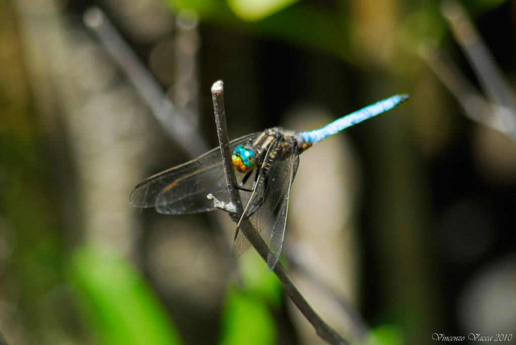 Non me ne volere ma lo scatto contiene molti errori, in primo luogo viene a mancare la nitidezza dovuta a una mf non corretta, parte della libellula risulta sovraesposta con coseguenti bruciature, vedi addome del soggetto, lo sfondo troppo presente distrae molto, diciamo che è uno scatto da ritentare.
