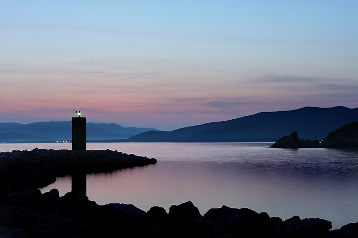 Molto bella. Unico punto da migliorare, c'è un eccesso di maschera di contrasto (o altro algoritmo equivalente) che genera una sorta di bordo fantasma tra la silhouette nera degli scogli e il mare.