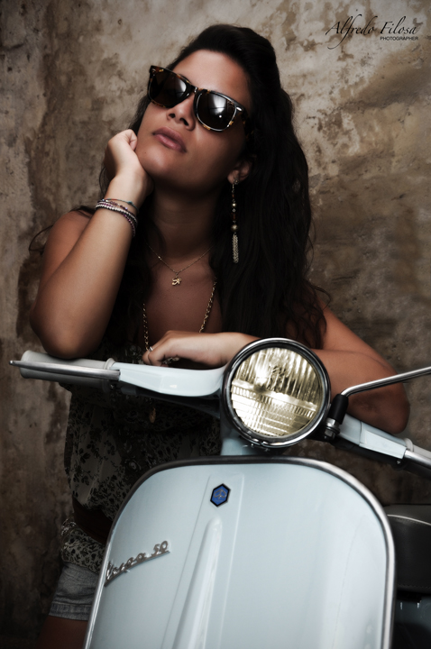 Questo ritratto l'ho fatto in cinque minuti di follia giu al mio garage.. in principio volevo semplicemente fotografare il mio vespino, poi una cosa tira l'altra e questo è il risultato finale.. :-S mi rendo conto che l illuminazione non è delle migliori considerando il riflesso nelle lenti.. -__-'