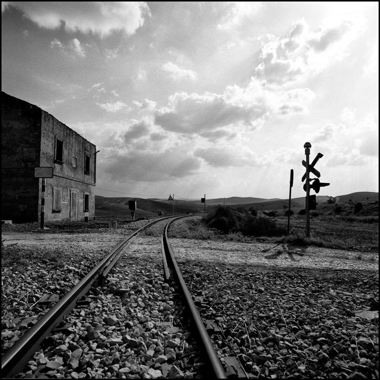 Ancora una strada..., questa volta ferrata, che porta lontano..., oltre il casello abbandonato. Non c'è uno dei tuoi soliti cieli scuri polarizzati, ma una luce chiara di ottimismo..., (o magari mi sbaglio )