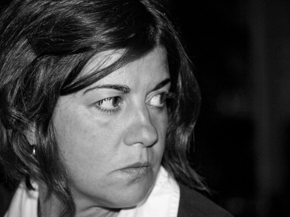Foto rubata al volo, con tele 40-150 a 150 mm e diaframma aperto al massimo, poca luce ambiente e flash da qualche metro di distanza. Mi e' piaciuta molto l'espressione di lei, assorta nei suoi pensieri, quando e' stata chiamata e si e' voltata. Poi, chiacchierando, ha autorizzato il post della foto