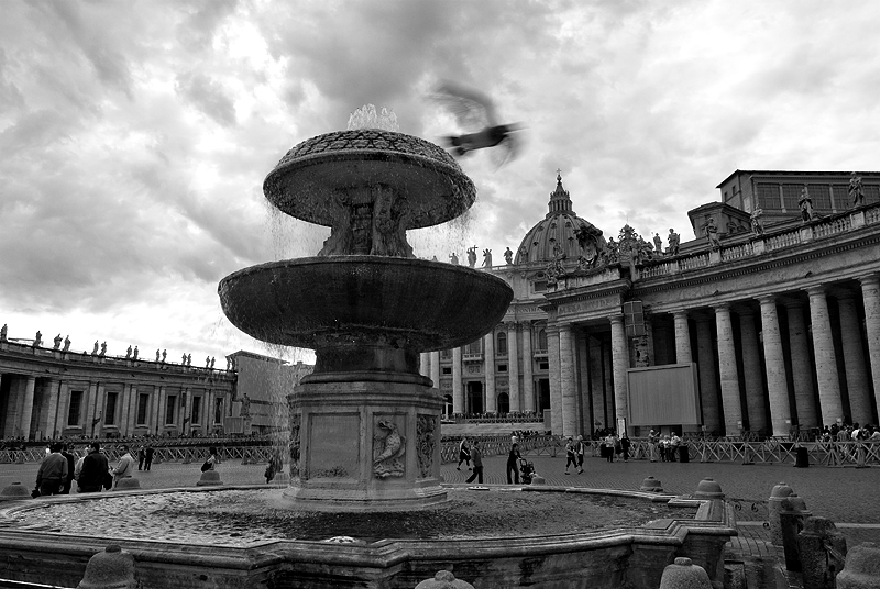 bello il mosso del volatile avrei cercato pero di aprire sotto la fontana