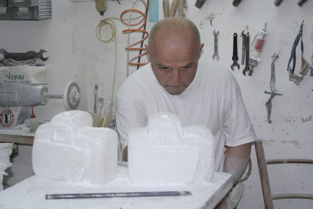Ripresa all'interno di una bottega di Volterra dove viene lavorato l'alabastro.