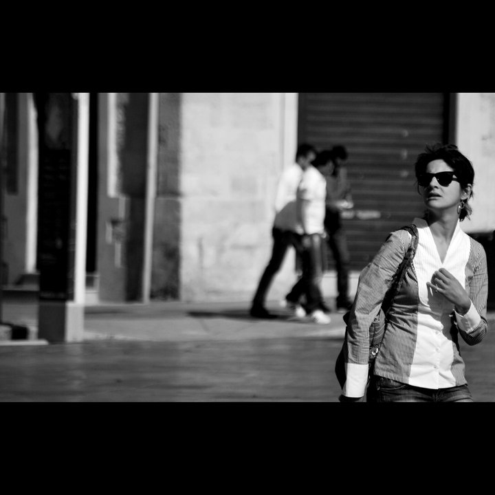 La conversione mi piace, una buona dinamica, ma il soggetto è relegato al margine e lo sguardo rivolto a sx non aiuta molto, infatti lo sguardo è rivolto verso l'alto. Credo che senza i passanti in 2p, sarebbe stata un'altra foto, poiché nell'economia dello scatto catturano attenzione,troppa, essendo posizionati sulla stessa linea del soggetto principale disturbando la visione.
