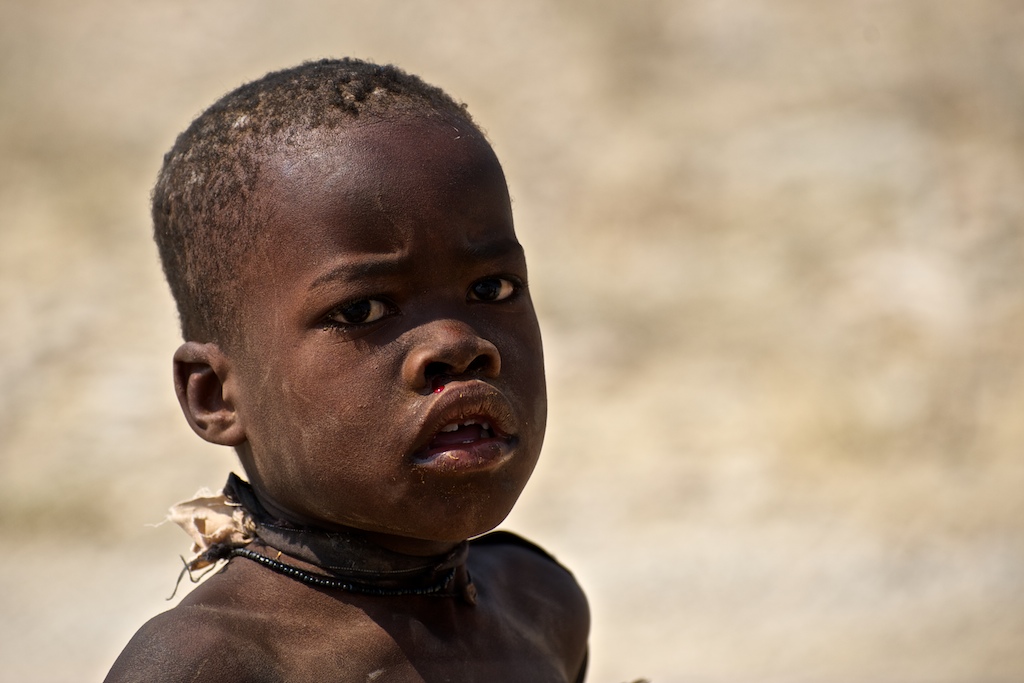 Il vuoto chiaro e sabbioso in sfondo a valorizzare l'impatto di questo volto fanciullo , una singola stilla rossa poco sopra le labbra, un piccolo rubino di sofferenza, altamente simbolico, a segnare d'emozione l'intero ritratto.