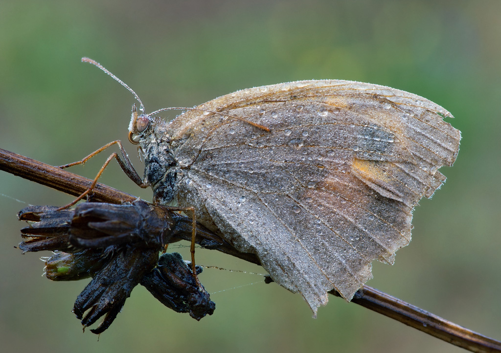 Una farfalla temeraria che mostra tutti i segni di una lunga vita vissuta. Buona la ripresa.