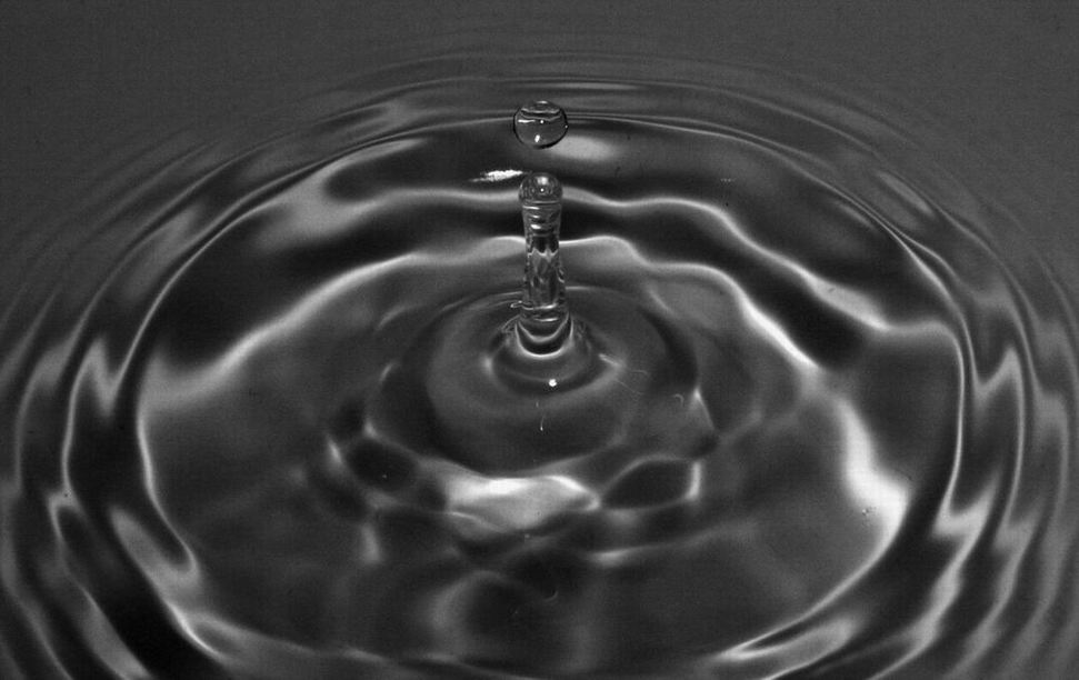 Per meglio evidenziare l'effetto anzichè riprendere dall'alto, dove inevitabilmente schiacci il movimento della goccia anzichè metterlo in rilievo, ti consiglierei di metterti più parallelo alla colonna di liquido provocata propio dalla stessa goccia. Tra l'altro evidenzierei maggiormente con del liquido colorato.