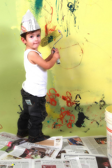 Al di la della simpatia che trasmette l'immagine, concordo con i dettagli espressi da Sanpit. Aggiungo che avrei dato un po più spazio alla parete dando la sensazione del grande lavoro che spetta al piccolo imbianchino