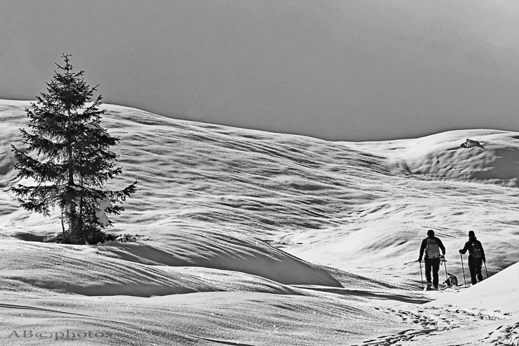 Non mi convince del tutto la tua scelta di BN con tanto grigio sulla neve, però l'effetto finale non è male.