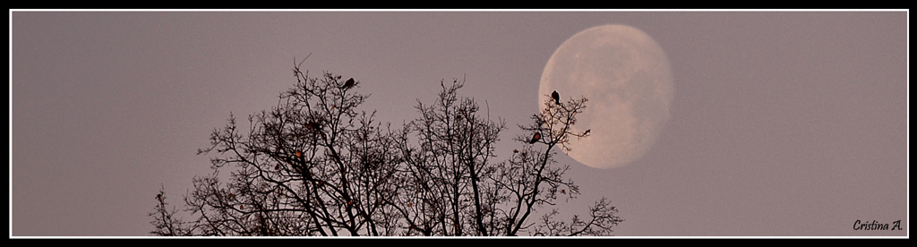 a me piace moltissimo, quindi complimenti per l'ardore che hai avuto nel decidere il taglio e per la scelta cromatica, di sicuro gusto. molto poetico, infine, quell'uccello che girato di spalle, contempla la luna.
