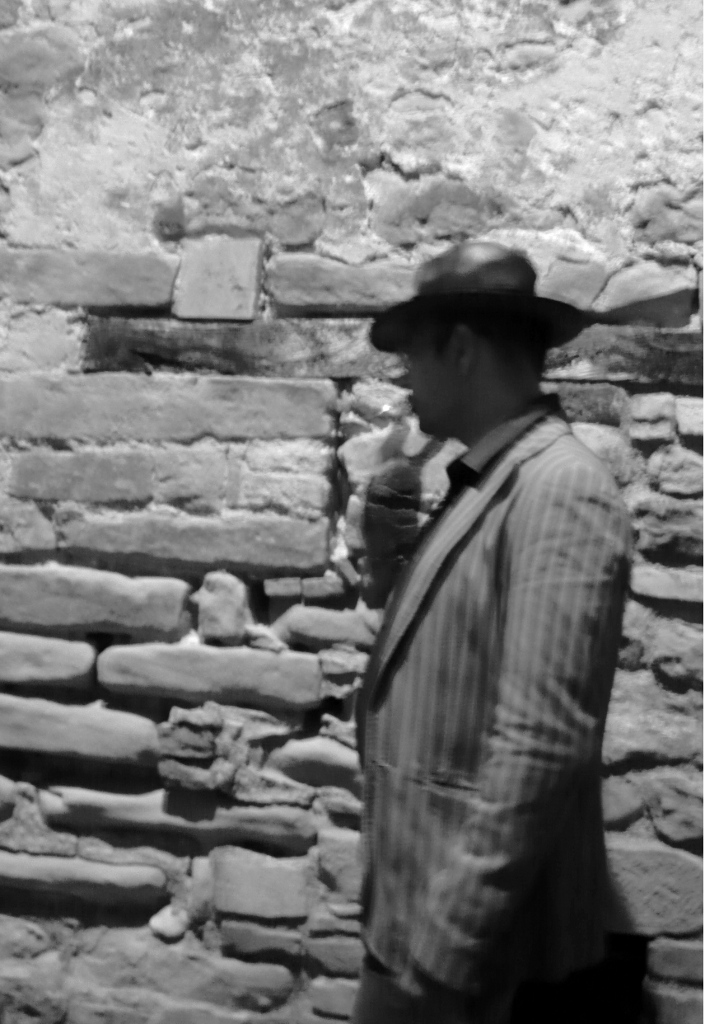 A mio parere, se a questa foto manca una cosa è una maggiore presenza del braccio con la sigaretta che, a causa di un movimento troppo rapido risulta troppo evanescente, mentre è una caratterizzazione importante del soggetto. La fotografia di per sé è interessante, sia per la mise del tuo amico, sia per la sua gestualità, sia per la contestualizzazione con quel muro di pietra di sfondo; il mosso diventa una metafora del sogno, l'immagine di una persona di molto tempo fa la cui memoria è ormai debole e remota. Per di più lo stesso soggetto è quasi di spalle, di fatto si allontana.