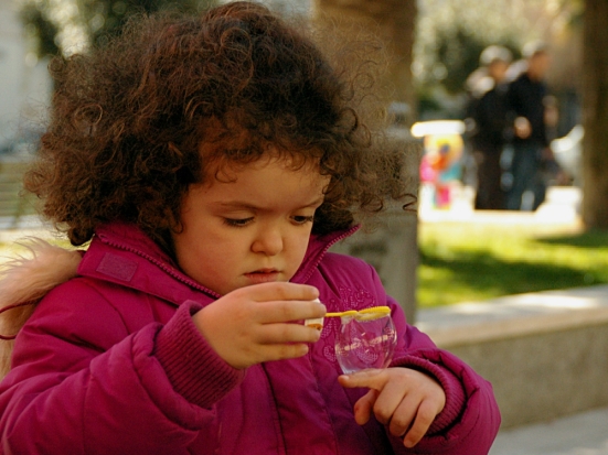 La dimensione dell'immagine purtroppo penalizza fortemente lo scatto... l'espressione della bimba quasi stupita o incuriosita della bolla di sapone è a dir poco fantastica e stupenda personalmente avrei dato più aria nella parte destra e un dito di più anche sopra i capelli per il resto è ok!!!!  _________________ NIKON D90 + AF-S DX Nikkor 18-105 mm f/3.5-5.6G ED VR,Nikkor 50mm f1.8,sigma 70-200 hsm f2.8