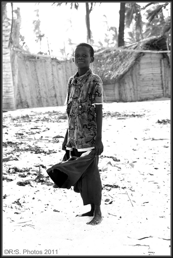 Un bel ritratto ambientato e in controluce. Il suo punto di forza è l'espressione del ragazzino, con gli occhi che sorridono guardando l'obiettivo e il volto soddisfatto. Bella anche l'inquadratura: anche con il soggetto al centro, la foto non è statica, sia perchè il soggetto è inquadrato di 3/4, sia perchè lo sfondo è asimmetrico. Il forte contrasto del b/n, con il terreno letteralmente bruciato, lo trovo funzionale a staccare bene il ragazzino dallo sfondo.