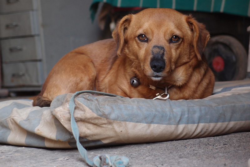 A mio modo di vedere la foto è corretamente esposta ma ci sono troppi elementi di disturbo sia dietro al cane che davanti al cuscino con quel laccio che distrae l ' occhio dal soggetto principale .