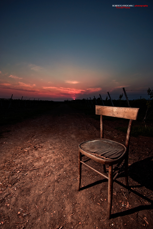 La foto mi piace molto e trovo l'idea vincente. C'è solo una cosa che avrei cambiato, l'ombra della sedia avrei fatto in modo che si estendesse verso l'orizzonte e non fuori dal fotogramma.